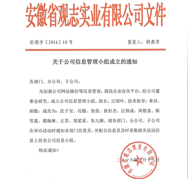 觀志實(shí)業(yè)信息管理小組成立